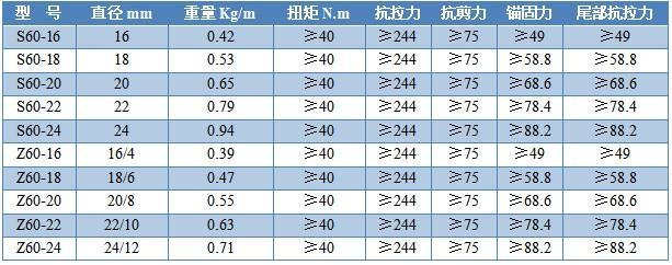 規(guī)格(mm) 桿體抗拉力(kn) 桿體抗拉強度(mpa) 連接部分及螺紋承載力(kn)